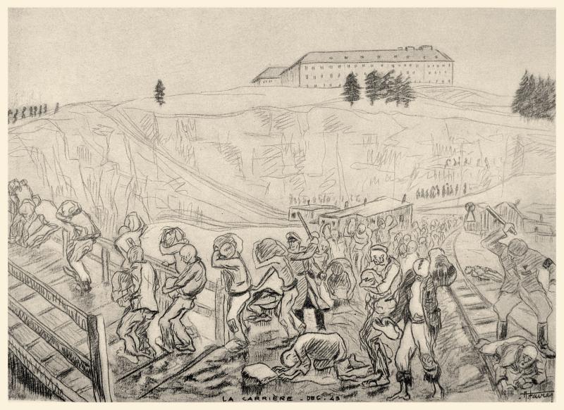 23 - "Les Kommandos : la carrière", Dessin de Auguste Favier (décembre 1943)